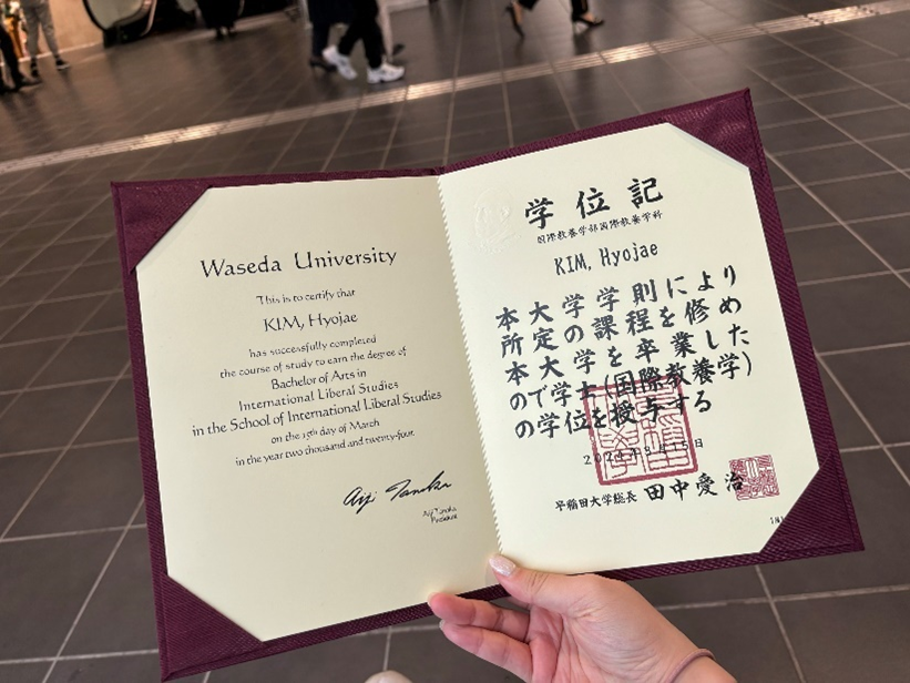 제가 ‘Care’의 가치를 행동에 많이 옮겼던 순간은 일본 유학 시절이었습니다. 유학 중 향수병, 진로 고민과 학업 스트레스로 힘들어하는 친구들을 자주 보았습니다. 저 역시 비슷한 고민을 느꼈던 만큼 친구들의 이야기에 공감하며 자연스레 조언과 고민을 나누게 되었습니다. 그러다 보니 점차 많은 친구들이 저에게 고민을 털어놓았고, 제가 작게나마 심리적인 지지를 줄 수 있는 존재가 되었던 것 같아요. 또 주변의 권유로 학생회 활동에도 참여하게 되었는데요. 당시 코로나로 인해 신입생들이 정보 습득이나 교류에 많은 어려움을 느꼈습니다. 이 상황에서 ‘어떻게 이들에게 도움을 줄 수 있을까’를 고민한 끝에, 학교생활에 유용한 정보를 담은 인스타그램 카드뉴스를 제작했습니다. 제작 중 인터뷰이를 찾는 데 어려움을 겪기도 했지만, 팀원들의 도움으로 차질 없이 콘텐츠를 완성할 수 있었어요. 이처럼 팀원들과 함께 학생회 활동에 참여하며 학생들을 도왔던 경험은 저에게 ‘Care’의 진정한 의미를 깨닫게 해 준, 기억에 남는 순간 중 하나입니다.