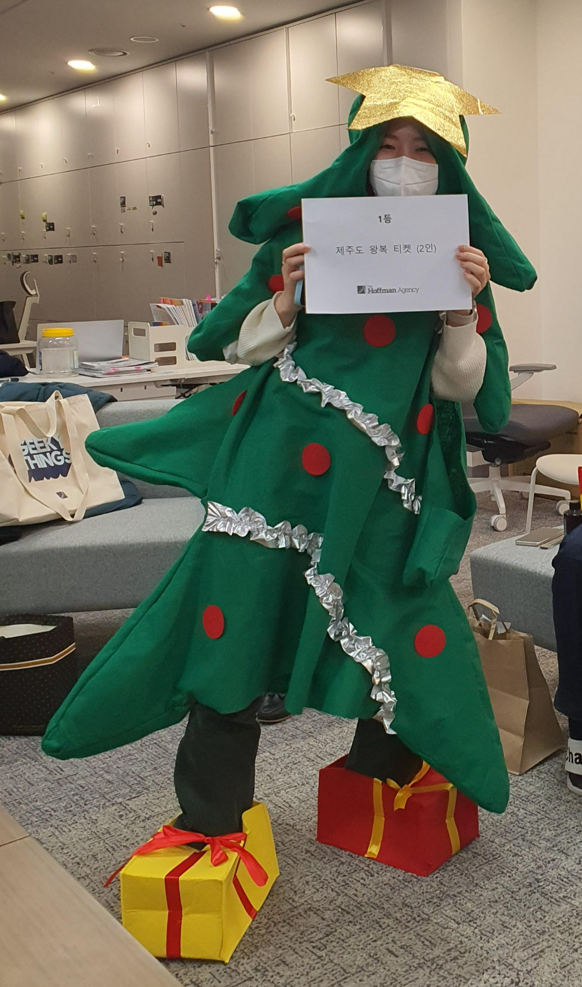 마지막으로 “HAppy Holiday”에 하이라이트였던 베스트 드레서 런웨이에서는 “RED & GREEN”을 컨셉으로드레스 코드를 맞춘 팀원들이 런웨이를 걸었습니다. 식사때부터 모두의 기대를 모은 코스튬들이 있었고, 투표를 통해 선정된 베스트 드레서에게는 제주도행 비행기(2인), 연차권, 블루투스 스피커 등 풍성한 경품이 전달되었습니다.