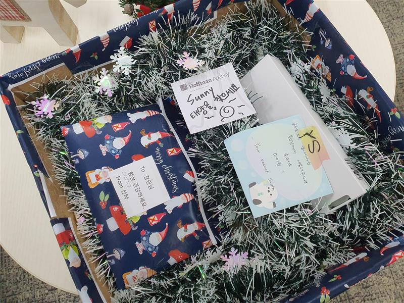 12월 20일로 예정된 HAppy Holiday를 더 즐기기 위해 2주 전부터 Secret Santa(마니또) 이벤트를 진행했습니다. 추첨을 통해 선정된 팀원의 Secret Santa가 되어 들키지 않고 칭찬, 간식, 작은 선물을 전달하며 모두가 마음 따뜻한 겨울을 보낼 수 있었습니다.