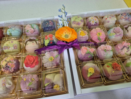 사무실에는 현수막, 배너, 풍선으로 꾸며진 포토존이 마련되었고, 동료들과 함께 단체 사진을 찍으며 의미 있는 순간을 남겼답니다. 예쁜 화과자와 향기로운 장미 차도 함께 나누며 따뜻한 분위기 속에서 대화를 나누는 시간을 가졌어요. 사무실과 재택을 오가는 하이브리드 근무중인 모든 직원들이 참여할 수 있도록 포토존은 한 주간 유지했답니다.