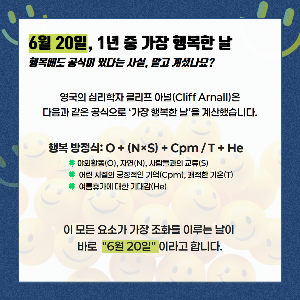 이 모든 요소들이 딱 맞아떨어지는 날, 바로 6월20일이 1년 중 가장 행복한 날이라고 합니다.