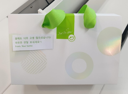 12월 20일로 예정된 HAppy Holiday를 더 즐기기 위해 2주 전부터 Secret Santa(마니또) 이벤트를 진행했습니다. 추첨을 통해 선정된 팀원의 Secret Santa가 되어 들키지 않고 칭찬, 간식, 작은 선물을 전달하며 모두가 마음 따뜻한 겨울을 보낼 수 있었습니다.